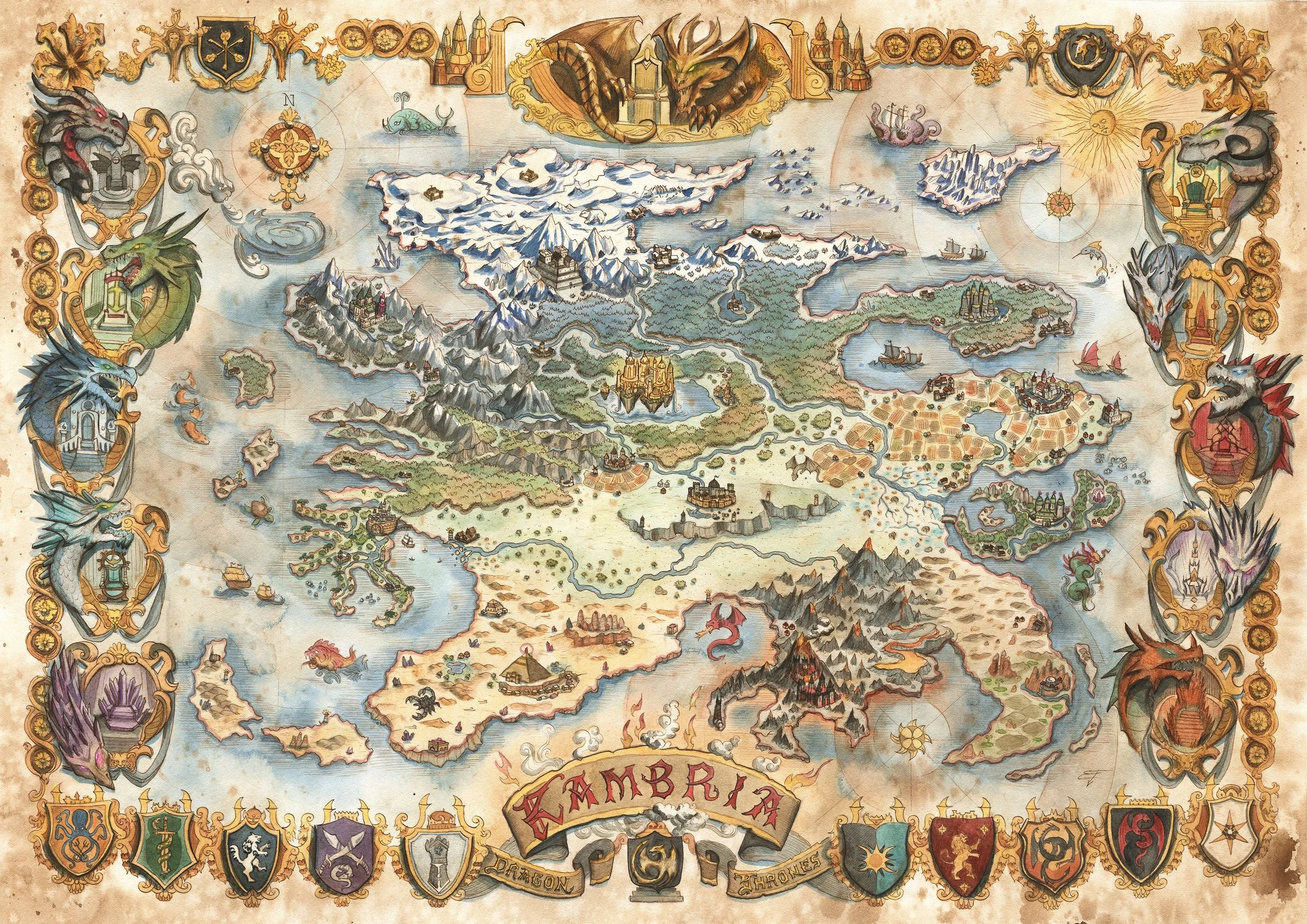 In the legendary realm of Kambria, ten Kingdom Houses compete for glory and honor. Each Kingdom has its own unique culture, values, and strengths—from powerful magic to brilliant strategy, from fierce warriors to cunning diplomats. And then there's the mysterious Guild, moving between the Kingdoms, dealing in information and opportunity.
